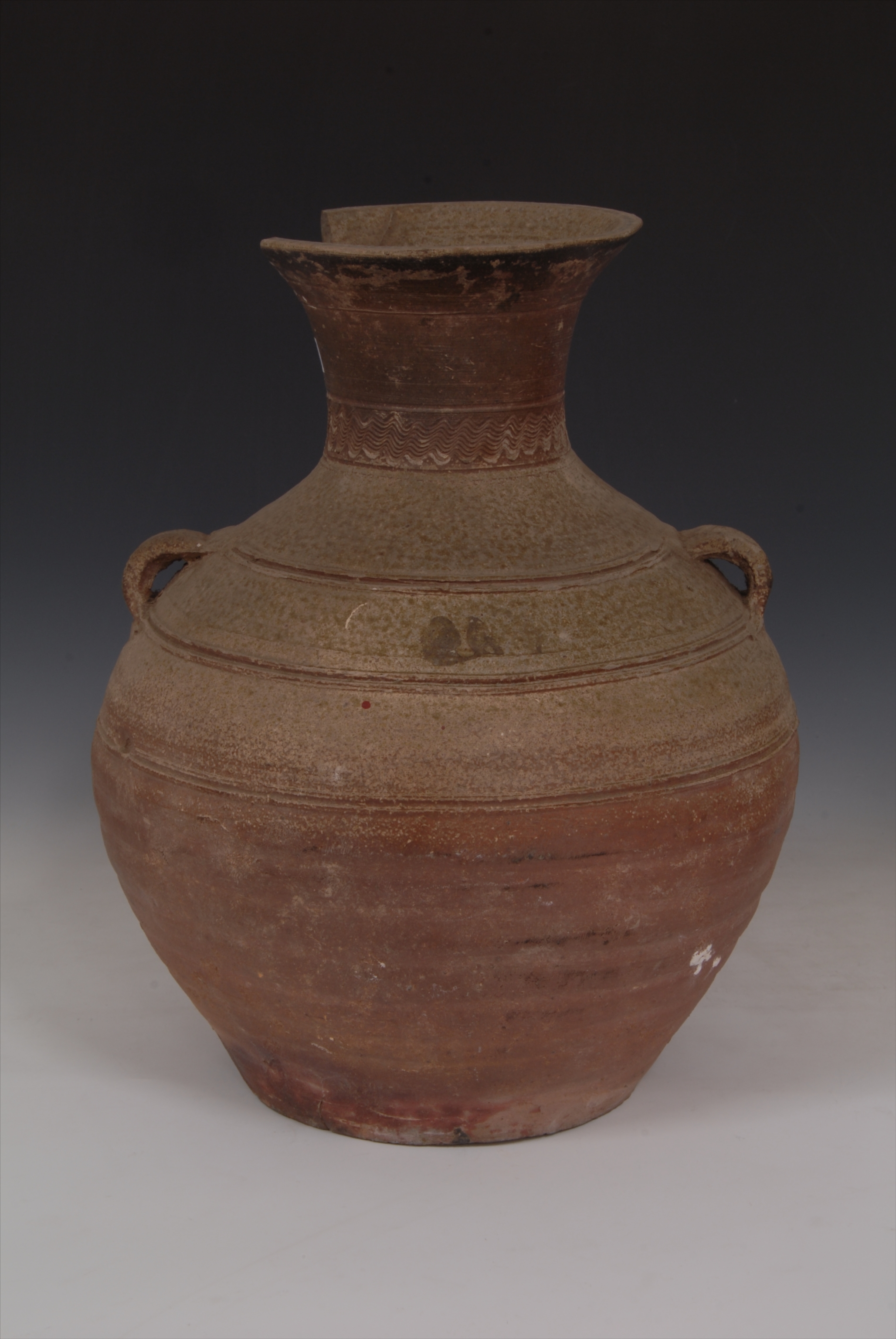 汉双耳弦纹釉陶壶