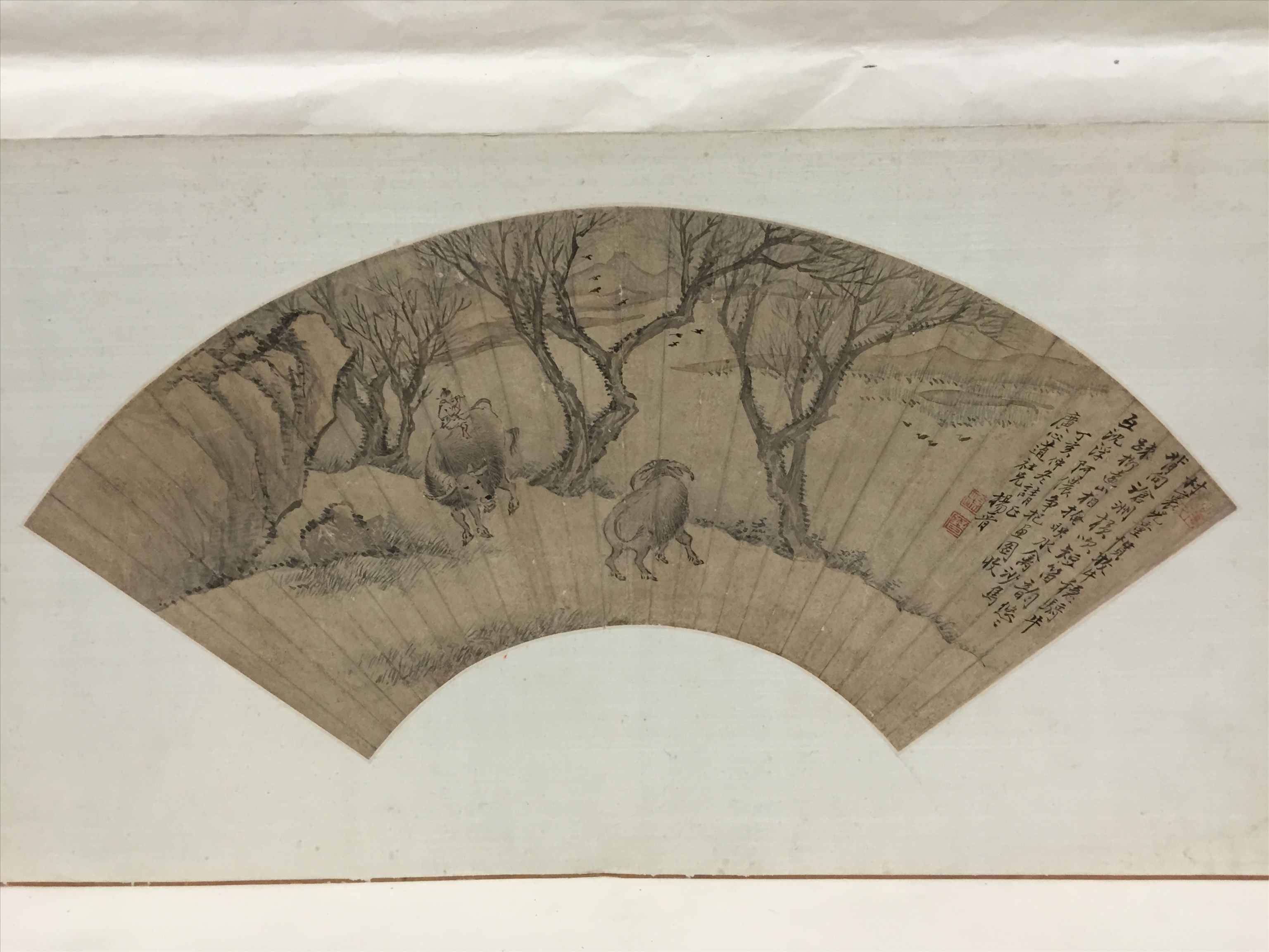 清杨晋牧牛图扇面