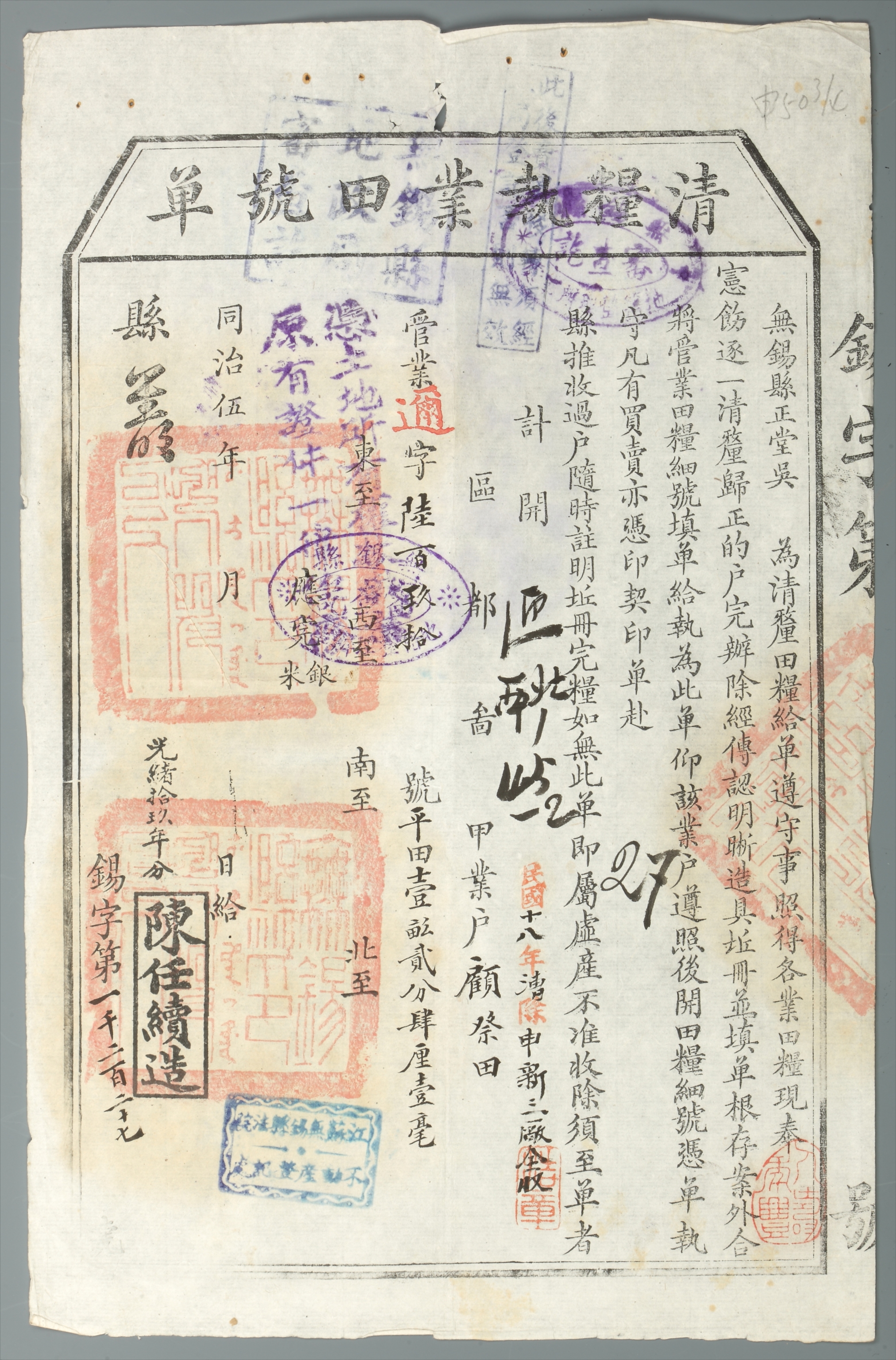 1929年清粮执业田号单