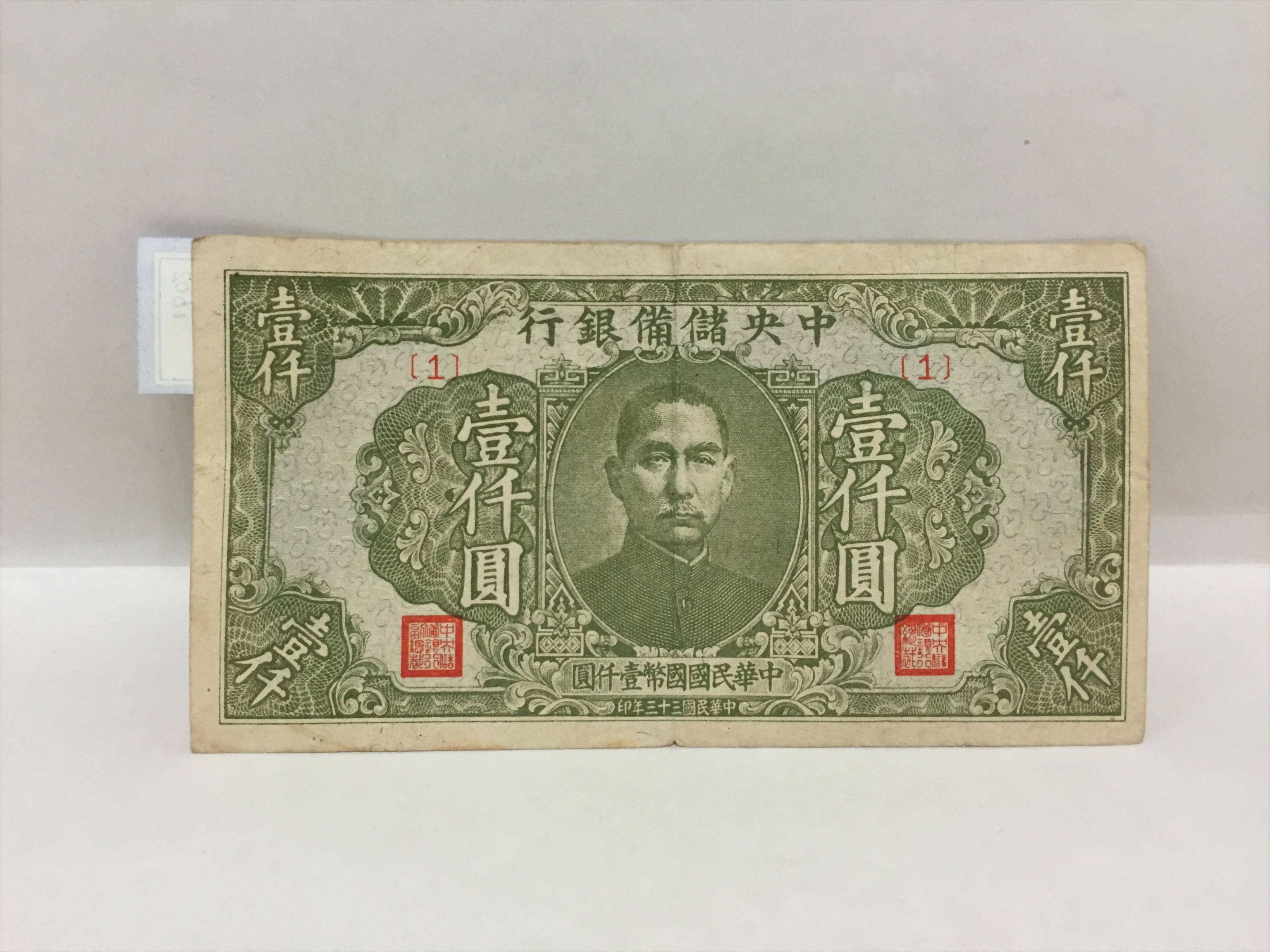 民国三十三年中央储备银行壹仟圆纸币