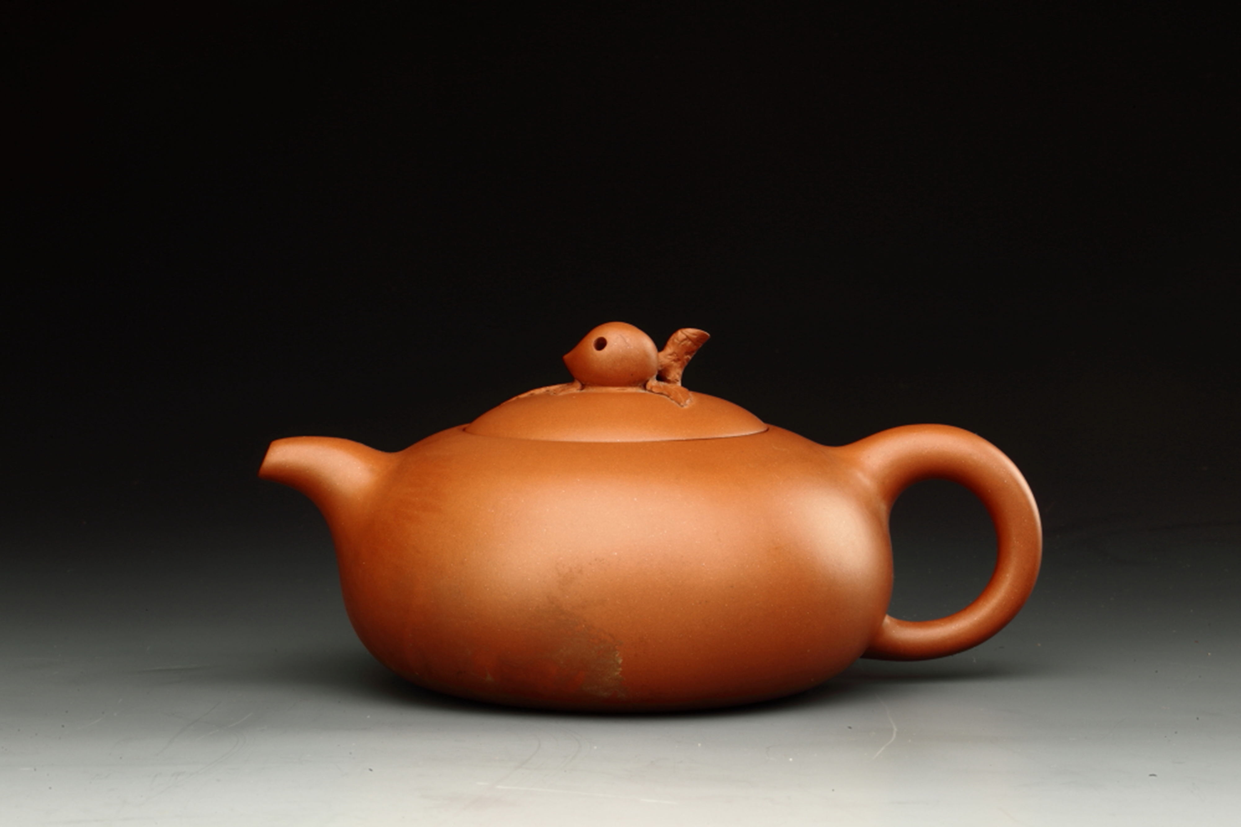 清“玉麟”款紫砂寿桃壶