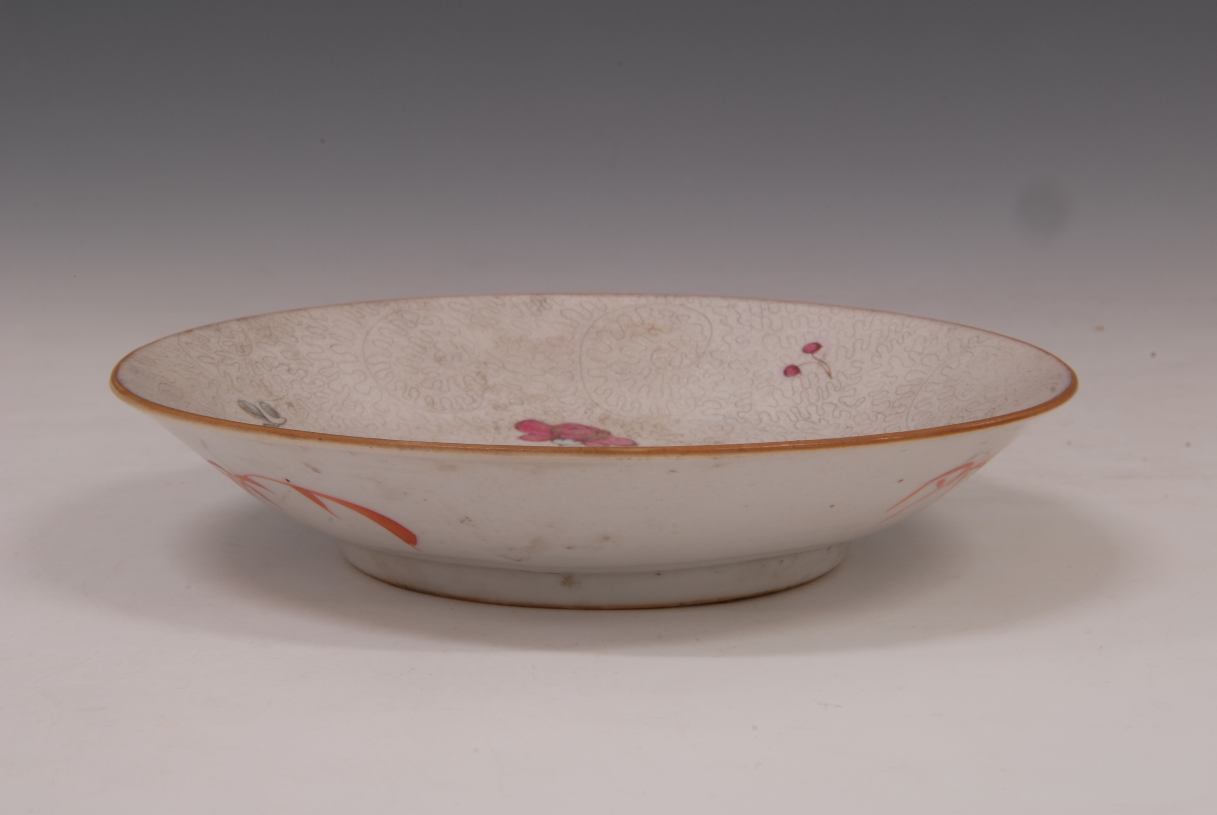 清“大清乾隆年制”款白地粉彩花卉纹瓷盘