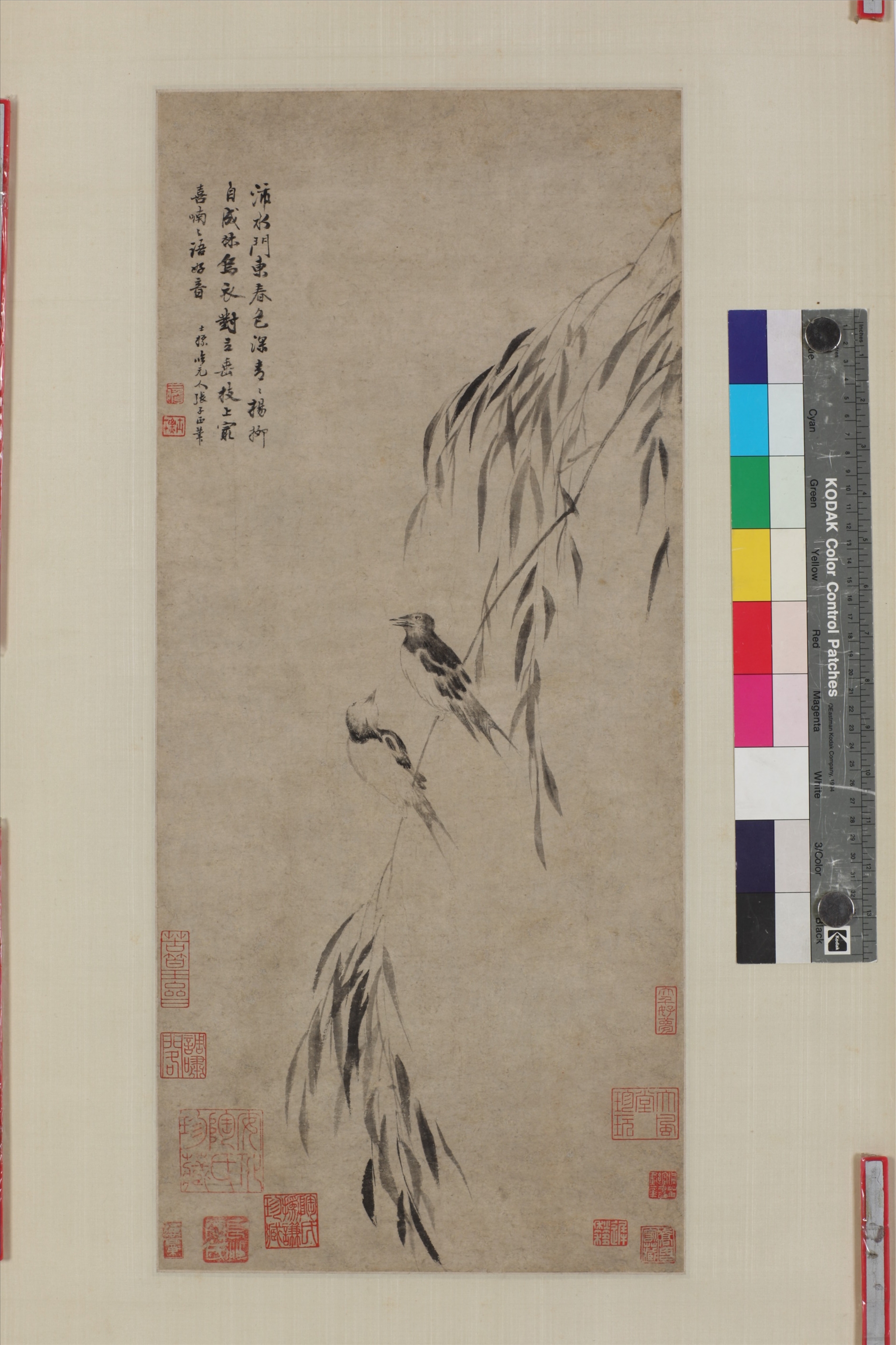 清査士标柳燕图轴