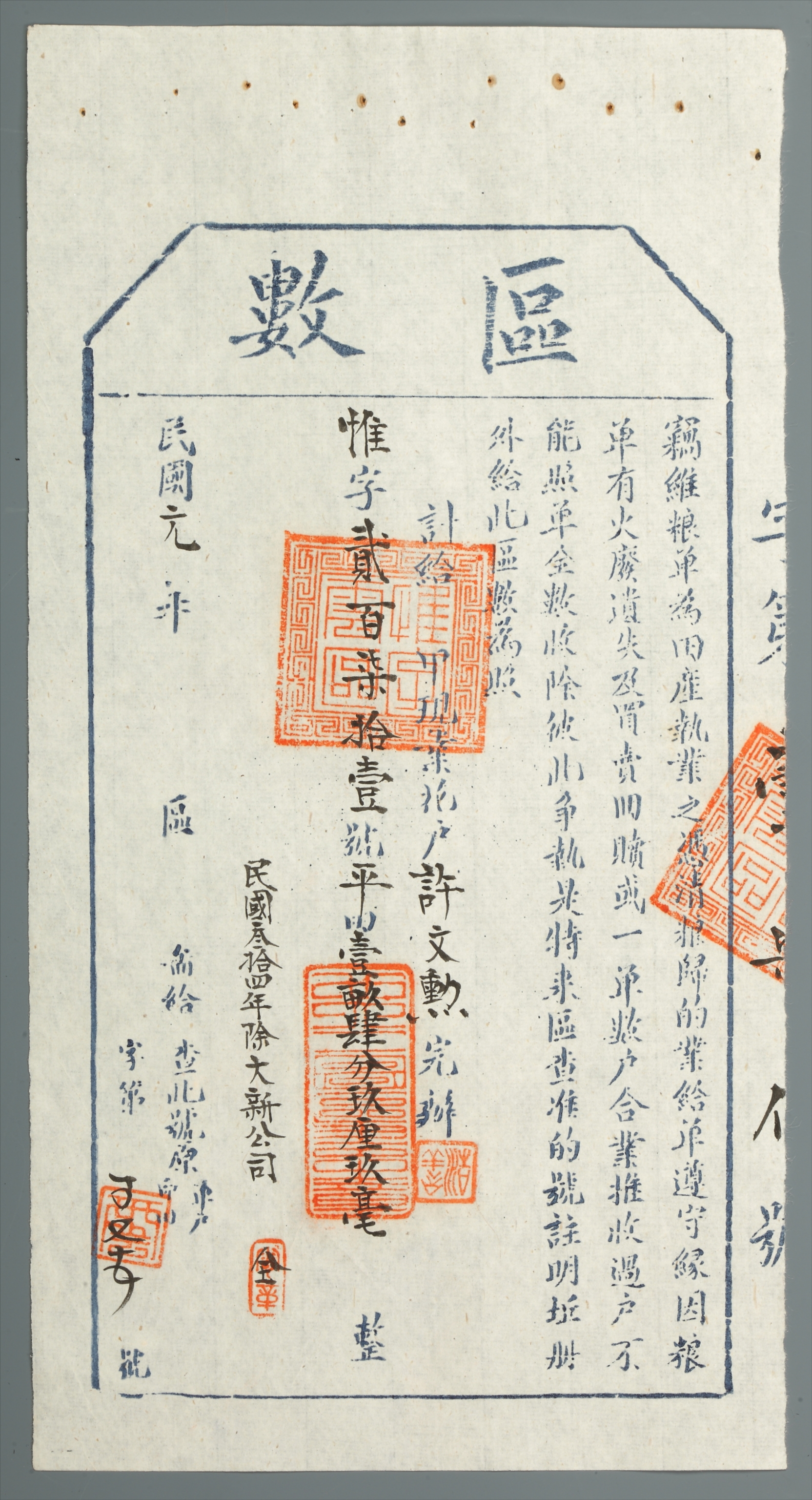 1912年许文勋持有的区数
