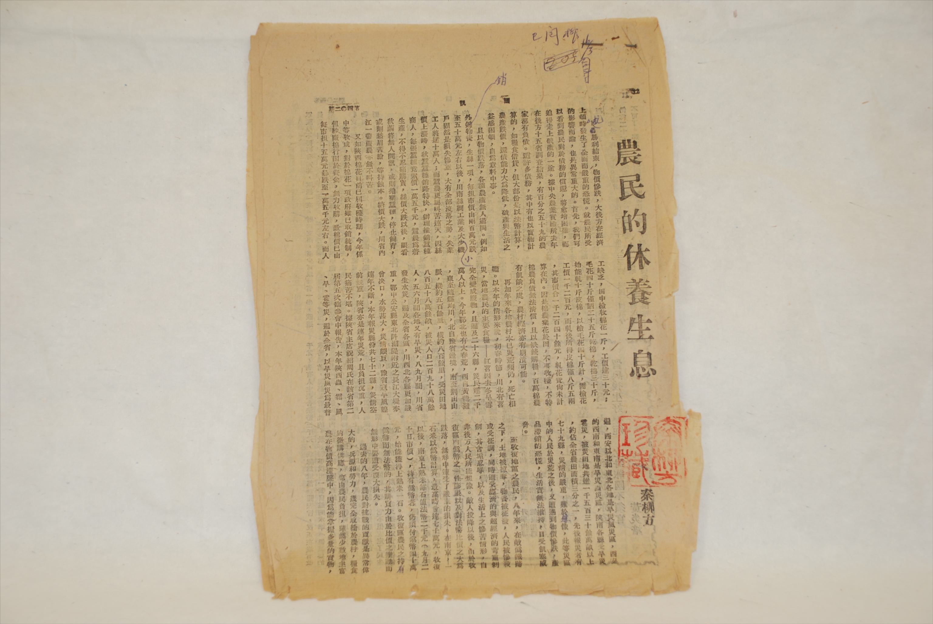 1945年10月13日秦柳方发表的《农民的休养生息》
