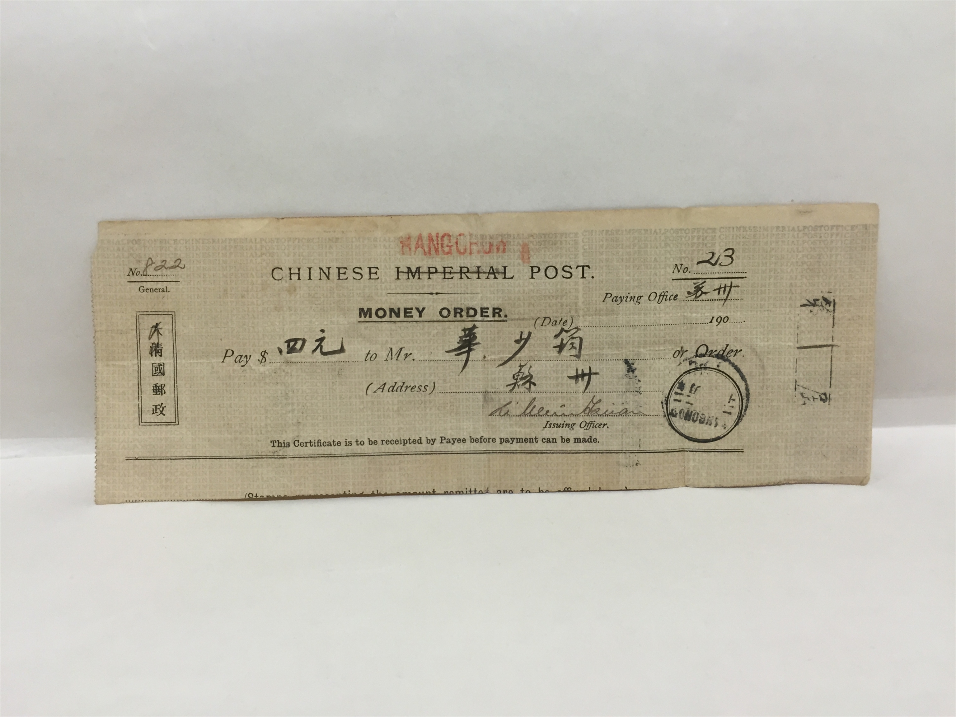 清大清邮政汇票四元