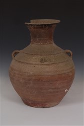 汉双耳弦纹红陶罐